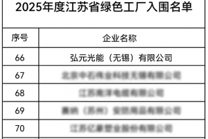 近日,江苏省工业和信息化厅正式公布2025年度江苏省绿色工厂入围名单,弘元光能(无锡)有限公司凭借在绿色制造、节能减排和可持续发展领域的扎实实践与突出成效,成功入选!这一荣誉不仅是对弘元贯彻“双碳”战略的权威认可,也标志着公司在推动绿色转型道路上迈出又一坚实步伐。绿色制造,权威认证,彰显双碳硬核成效作为落实“双碳”目标的关键举措,江苏省绿色工厂创建工作紧扣《制造业绿色低碳发展行动方案(2025—2027 年)》要求,以“用地集约化、原料无害化、生产洁净化、废物资源化、能源低碳化”为准则,是衡量企业可持续发展能力的硬核标尺。弘元光能此次成功入选,充分展示了企业在精益制造、节能降耗、绿色管理等方面的专业实力,也向行业与社会释放出清晰信号:弘元正以更高站位、更硬实力与国家绿色战略同频共振,持续构建面向未来的绿色制造体系。政府赋能,凝聚合力,筑牢绿色发展根基弘元光能江阴基地作为弘元光伏产业链终端组件产品智造中心,自绿色工厂创建项目启动以来,每一步扎实推进都离不开政府部门的精准赋能,为基地绿色制造体系的完善与提升创造了有利条件,为企业推进“双碳”建设注入了强劲动力。江阴基地围绕绿色制造方向开展系统性布局,组建专项团队,聚焦基础设施优化、能源管理提升、清洁生产推进与绿色供应链构建等重点领域稳步推进。目前,基地已取得能源管理体系认证、温室气体核查、产品碳足迹评价和零碳工厂评定等多项成果,为后续打造更高水平的绿色工厂奠定了坚实基础。初心如磐,向绿而行,持续贡献弘元力量此次获评江苏省绿色工厂称号,是弘元在绿色制造道路上的又一次重要突破,更是技术创新与可持续发展理念的深度融合。未来,弘元将持续深化全球化布局战略,夯实绿色低碳体系建设,将绿色理念贯穿产品设计、智能制造、供应链协同全链条。立足行业责任与全球视野,以创新驱动高效生产,提供光伏全场景解决方案,以实际行动助力全球碳中和目标落地,为绿色能源转型持续贡献“弘元力量”。