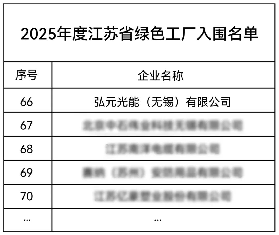 近日,江苏省工业和信息化厅正式公布2025年度江苏省绿色工厂入围名单,弘元光能(无锡)有限公司凭借在绿色制造、节能减排和可持续发展领域的扎实实践与突出成效,成功入选!这一荣誉不仅是对弘元贯彻“双碳”战略的权威认可,也标志着公司在推动绿色转型道路上迈出又一坚实步伐。